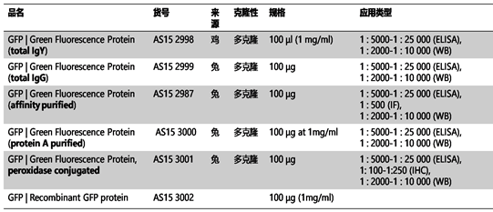 3、 GFP相關(guān)抗體及重組蛋白