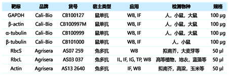 西美杰為您推薦Cali-Bio和Agrisera公司經(jīng)過驗(yàn)證的,高質(zhì)量的內(nèi)參抗體,產(chǎn)品如下: