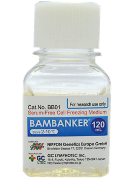 Bambanker?是歐洲專利配方無血清細胞凍存液,幾乎適用任何類型細胞,包括原代細胞、干細胞、淋巴細胞以及常規(guī)細胞系等,該產(chǎn)品已在50多個同行評審出版物中被引用,獲得全球用戶的一致好評。目前,日本細胞庫用Bambanker?凍存超過1300種不同細胞系,有些細胞用Bambanker?凍存超過5年其復(fù)蘇活率仍可達到80%以上。相比于傳統(tǒng)用血清凍存細胞的方法,用Bambanker?凍存細胞有無法比擬的優(yōu)勢,主要包括: