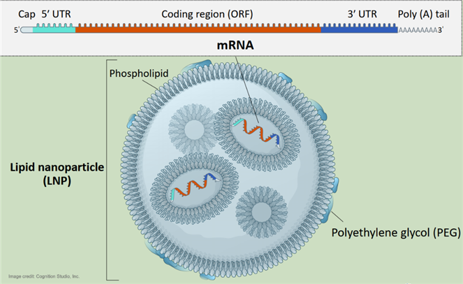 通常情況下,mRNA疫苗通過胞吞作用以內(nèi)含體的形式進(jìn)入細(xì)胞質(zhì)內(nèi),為了保證mRNA在翻譯前保持完整,mRNA需要在內(nèi)含體與溶酶體結(jié)合前打破內(nèi)含體包膜并逃離,釋放出來的mRNA分子在細(xì)胞質(zhì)里游動(dòng),直至游到核糖體,并在此翻譯成肽鏈,最終折疊成蛋白質(zhì),這個(gè)外源蛋白被稱為抗原蛋白,它能刺激免疫系統(tǒng),誘導(dǎo)針對該抗原的免疫反應(yīng),從而達(dá)到預(yù)防相關(guān)疾病的效果。