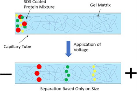 CE-SDS是一種在變性條件下檢測蛋白純度的方法,方法原理與SDS-PAGE(十二烷基硫酸鈉聚丙烯酰胺凝膠電泳)類似,與SDS-PAGE相比,CE-SDS是以高壓直流電場為驅(qū)動力,以彈性石英毛細(xì)管為分離管道,毛細(xì)管內(nèi)先填充凝膠,此時(shí)凝膠會在毛細(xì)管內(nèi)形成分子篩,樣品依分子量的大小在毛細(xì)管內(nèi)移動速度不同而進(jìn)行分離,能夠有效減少組分?jǐn)U散,所得峰型尖銳,分離效率高。因此,CE-SDS具有上樣量小、通量大、分辨率高、重復(fù)性好、可精確定量抗體降解碎片等優(yōu)點(diǎn),用于還原和非還原單抗藥物的純度分析,免去了復(fù)雜的人工操作,在還原模式中還可以實(shí)現(xiàn)非糖基化重鏈(NGHC)的精確定量。