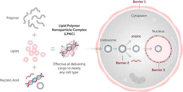 不同于傳統(tǒng)基于單組分的轉(zhuǎn)染試劑(如陽(yáng)離子聚合物或陽(yáng)離子脂質(zhì)體),為了進(jìn)一步提高轉(zhuǎn)染效率,以應(yīng)對(duì)不同細(xì)胞類型或特定的應(yīng)用。Mirus將專利的多聚物(Polymer)及脂質(zhì)(Lipids)技術(shù)進(jìn)行多重組合,在不形成脂質(zhì)體復(fù)合物(即liposome,通常具有細(xì)胞毒性)前提條件下,得到多種類、高性能的轉(zhuǎn)染方案,克服細(xì)胞遞轉(zhuǎn)過(guò)程中的多重阻礙,以實(shí)現(xiàn)更高效轉(zhuǎn)染和更低的細(xì)胞毒性(圖2)。