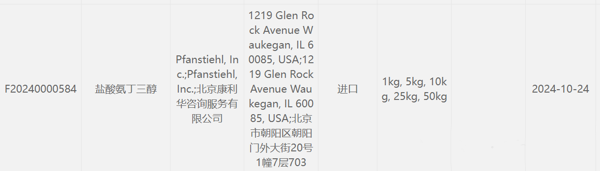 “ 熱烈祝賀Pfanstiehl的注射級(jí)鹽酸氨丁三醇Tris HCL(T-154)喜獲CDE登記號(hào)F20240000584. 這是Pfanstiehl產(chǎn)品獲得的第16個(gè)CDE登記號(hào)!”