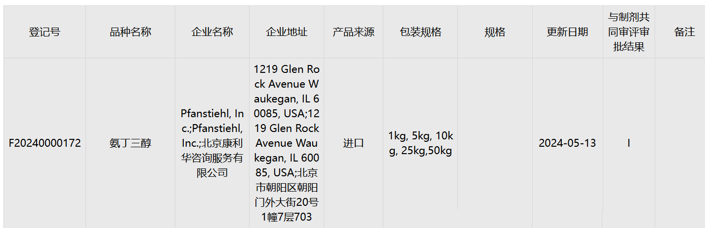 Warm congratulations to Pfanstiehl! Tris Base (Tromethamine), a new product launched in 2023, has successfully obtained the CDE registration number F20240000172. This marks the 15th CDE registration number received by Pfanstiehl's products!